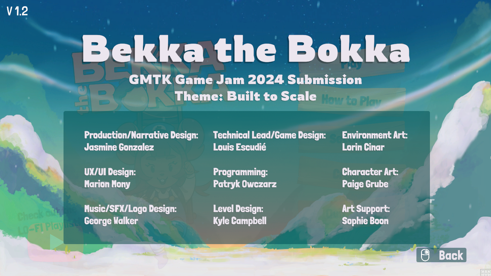 Bekka the Bokka is (in my opinion) the best game jam I’ve had (yet). It was made over the course of the week by a 9(!) person team with the theme “Built to Scale”.